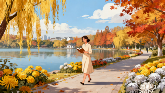 飞金湖畔柳,溢彩路边枫。