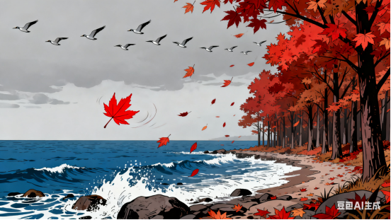 惜别渤海又秋风,只剩枫心那点红。