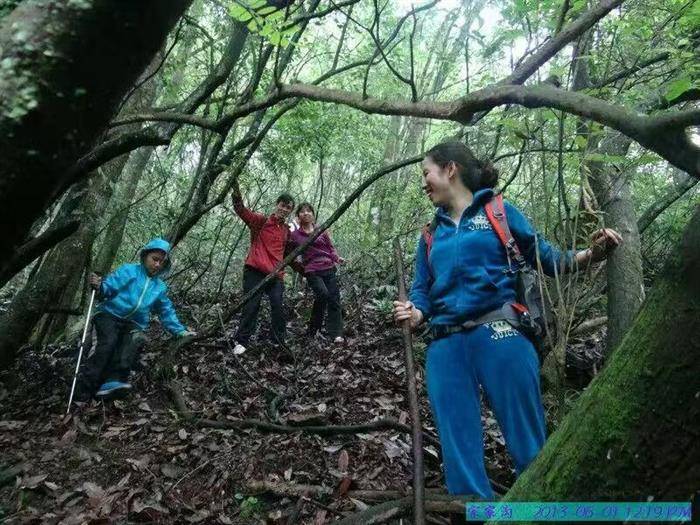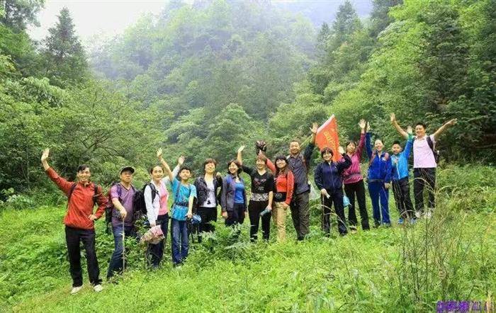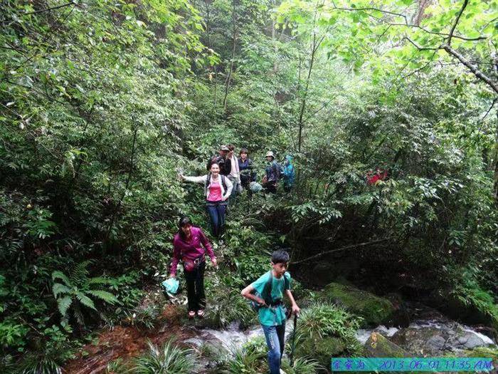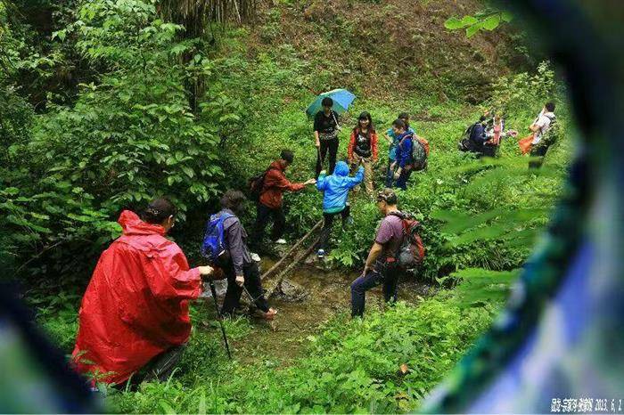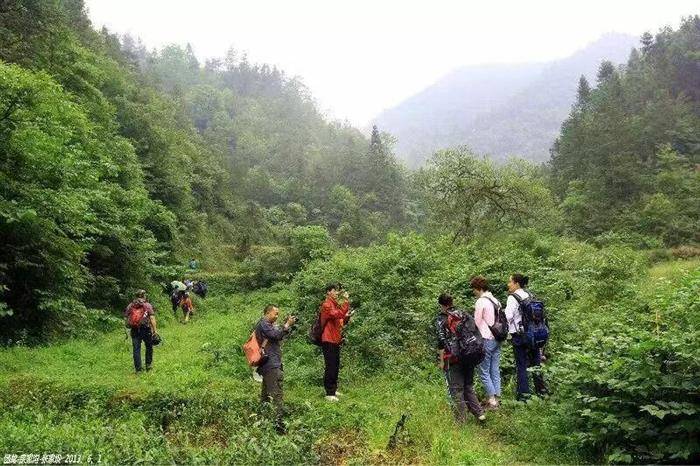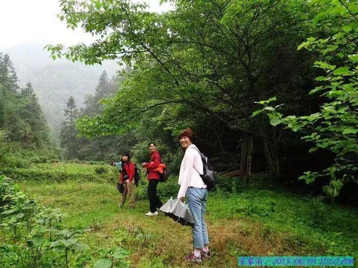 当然,从村庄向一个深山沟里行进,这种感受会更加清晰地注入你的心田。溪流绝对地清澈见底,纯净得无丝毫杂质,小路盖上了小草,碧草如茵,还不看苍翠欲滴的山岭,整个的心都被绿色包裹了,清清凉凉的,全身的血液也像纯净的溪流一样欢快地流淌起来了。我们进入时,是阴雨天,但这阴天丝毫没有影响驴友们快乐的心情。我们沿着曲曲折折的溪边草径溯流而上,溪边有一些田土,这些田土已不见人耕种,现在的农村,青壮年已外出打工,留在家里的祖孙两代人,只吃购买的商品粮食,也少有人耕地了,这里也是如此。不过在这样的深山间,不种田地,而退耕还林是最适当不过的。美丽中国的梦想,也从这里开始实现。