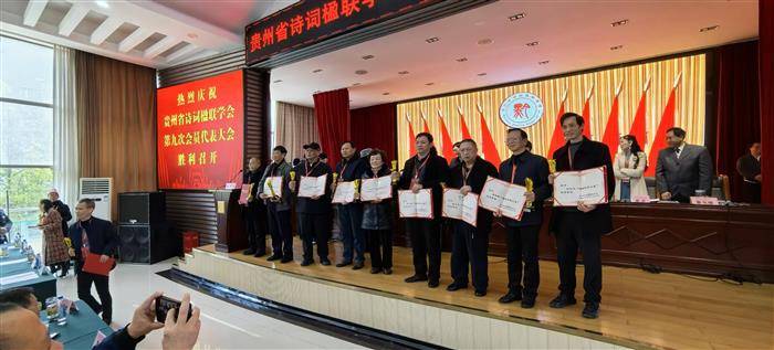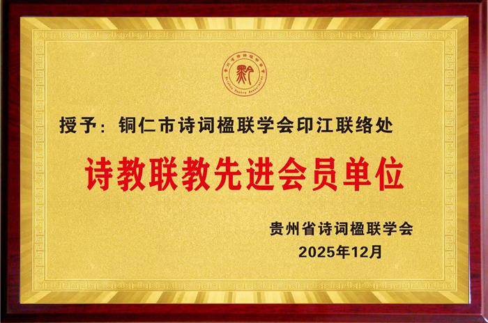 12月7日,贵州省诗词楹联学会第九次会员代表大会在贵阳胜利召开,铜仁市诗词楹联学会印江联络处被贵州省诗词楹联学会授予诗教联教先进会员单位!获得这一殊荣是 铜仁市诗词楹联学会、印江县文联的正确领导和印江诗友共同努力的结果,希望诗友们再接再厉!继续参加印江诗友随心采风活动,线上线下积极创作,争取在新的一年更上一层楼!