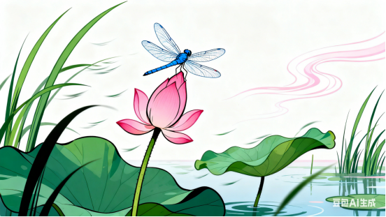 风摇倩影蜻蜓戏,洒向池边缕缕香。
