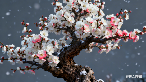 一树梅花白透红。凌风绽蕊战严冬。