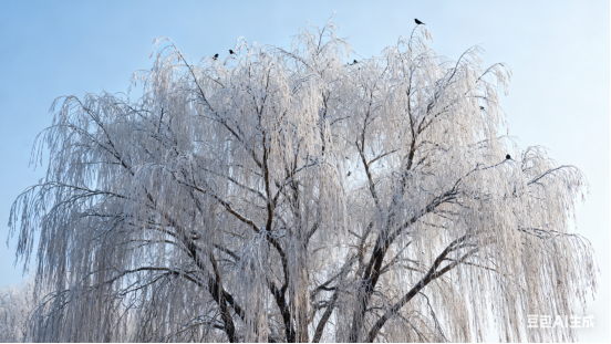 疏柳垂枝映远空,冷霜侵骨志犹雄。枯条曳曳栖乌鹊,冻影依依立晚风。