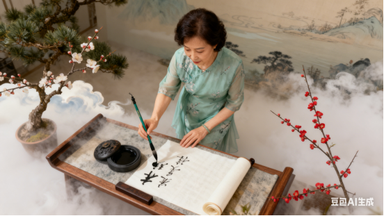 蘸取松涛入字,题来梅影留声。云笺漫洒气神清,书写人生新梦。