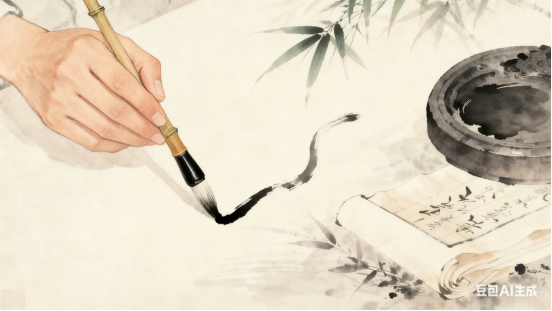 翠管修身有致,柔毫饮墨含情。轻盈舞步砚池行,足下丹青仙境。