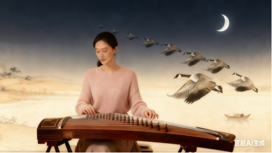 二十一弦撩寂夜,平沙落雁小舟横。