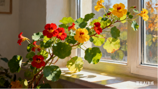 方寸窗台舒绿意,花香淡淡绕厅流。