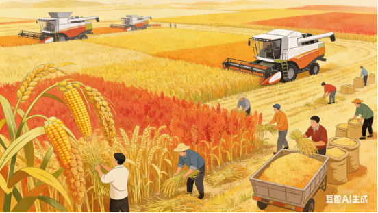 金风浩荡,塞北高歌唱。万众一心佳绩创,稼穑丰收在望。