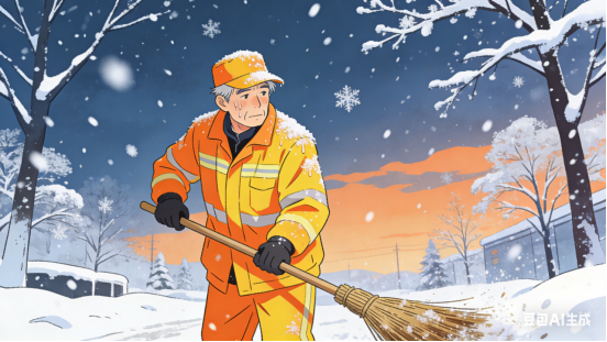 清平乐.雪中环卫工(新韵)