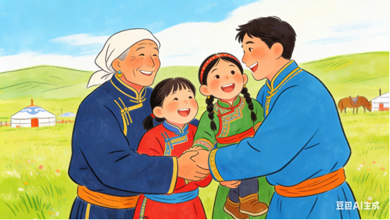 蒙族长调悠扬,奶茶美酒飘香。游子荣归故里,温情汇聚毡房。
