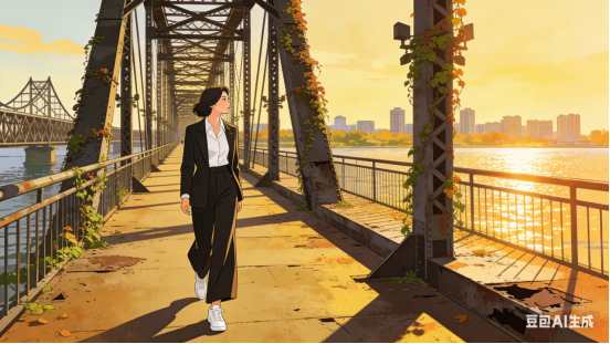 秋高气爽,漫步江桥上。两岸高楼倾眼望,往事硝烟流淌。