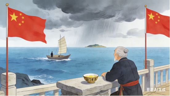 年年望断归舟,浪花早已白头。一碗金门老酒,能消多少乡愁。