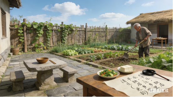 菜畦一片耕读,心田万顷疾俗。闲与清风散步,漫聊撇捺行书。