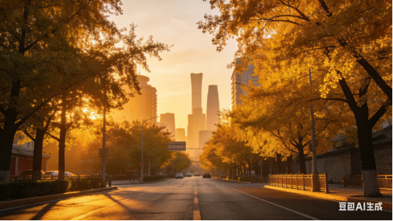 街旁树映霞光,城区韵味悠长。慢赏沿途景致,心安便是良方。