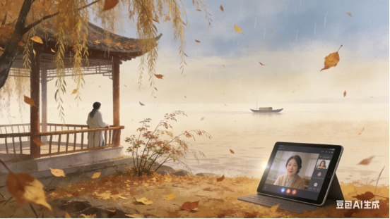 柳枝摇曳轻吟,离歌一曲消魂。莫道山高路远。荧屏相伴温馨。