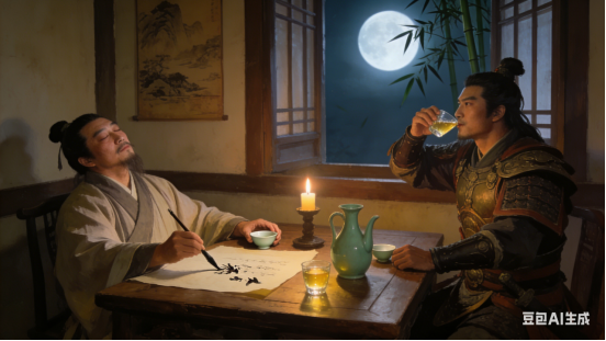 英雄把盏临风,文人醉里生情。自古谁甘寂寞,举杯青史留名。